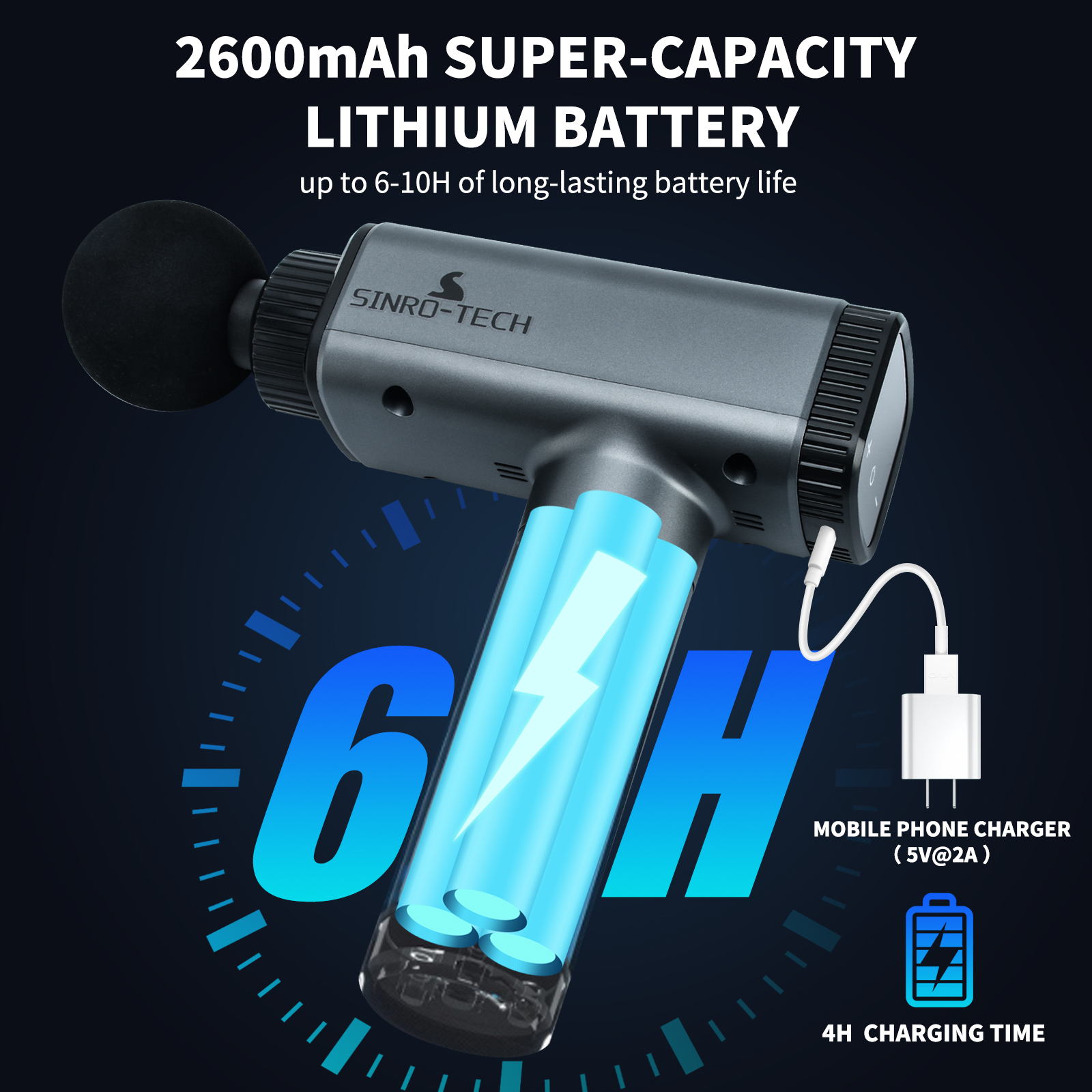 • 易于使用:SINRO-TECH深层组织按摩枪操作非常简单,更大更清晰的LED全屏,可以轻松调节速度和振动级别。配备便携式收纳包,让您随时随地放松肌肉。