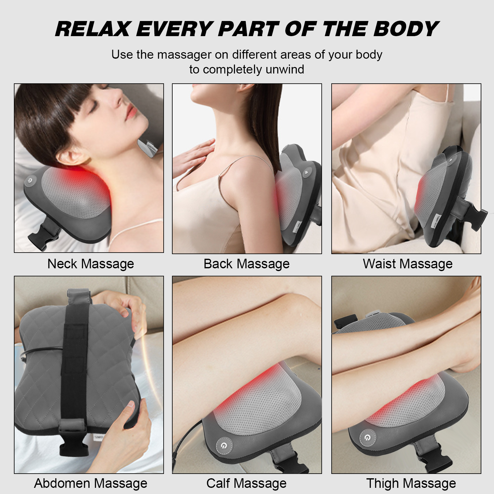 - 智能加热:我们的颈部和背部按摩器具有智能加热功能,可促进血液循环并提供舒适的深层组织揉捏按摩。它配有过热保护装置,并采用适合人体的红外加热温度。