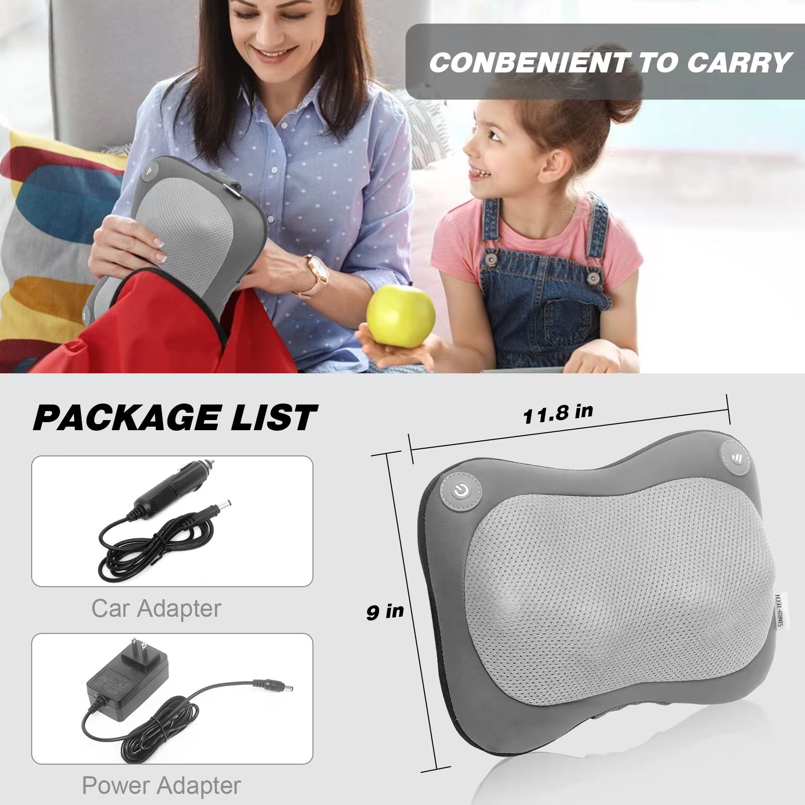 - 易于使用:我们的指压颈部背部肩部按摩器易于使用,配有UL认证的电源适配器,适用于110-120V和220-240V的电源插座或车载适配器。不可充电或无绳